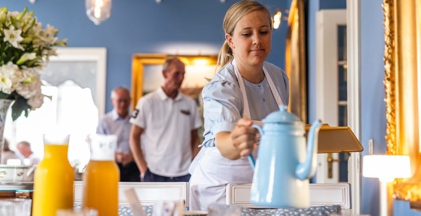 Freshly brewed coffee served on the Terrace with wedding cake from the Dyvig patisserie in Dyvig (a classic flavour suggestion is Valrhona chocolate and fresh berries – with white marzipan and flowers to match those in the bridal bouquet).