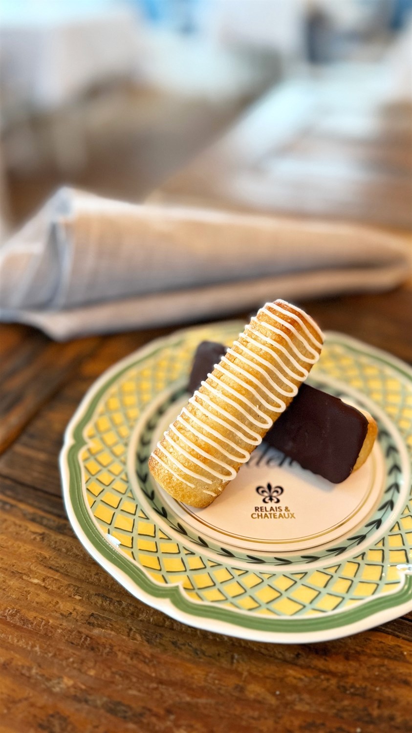 Torsken smøres med lidt olie samt salt og placeres en forvarmet ovn ved 160 grader i ca. 10 min så fisken kun lige falder fra hinanden ved en let berøring. Lun trøffelsaucen i en passende gryde ved svag varme så den ikke brænder på – anret saucen midt på en tallerken – kom den bagte fisk midt på saucen, vend grønkålen og "Piemonte" hasselnødde-vinaigrette sammen og placerer den oven på torsken.